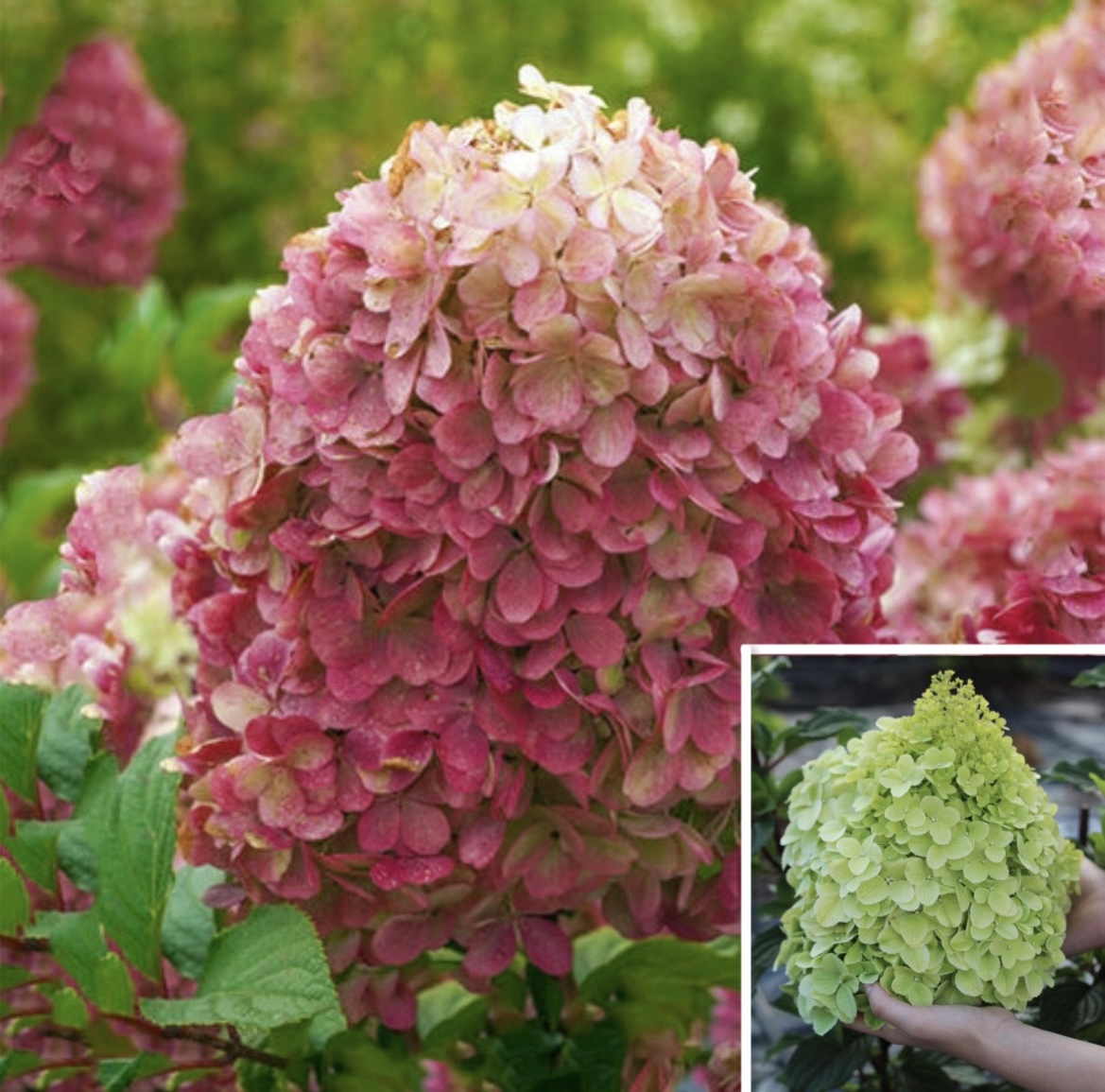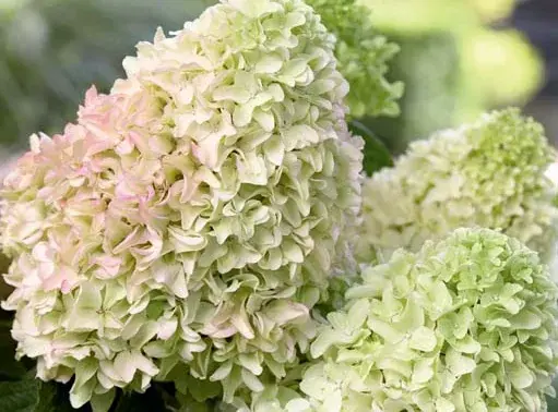 Крупные (до 25 см) пышные соцветия конической формы расположены на верхушечных частях побегов. В начале цветения окрас цветков — насыщенный салатовый, постепенно сменяющийся на более светлые сливочно-салатовые оттенки. В конце процесса зелёные оттенки почти исчезают, уступая место светло-розовому подтону.