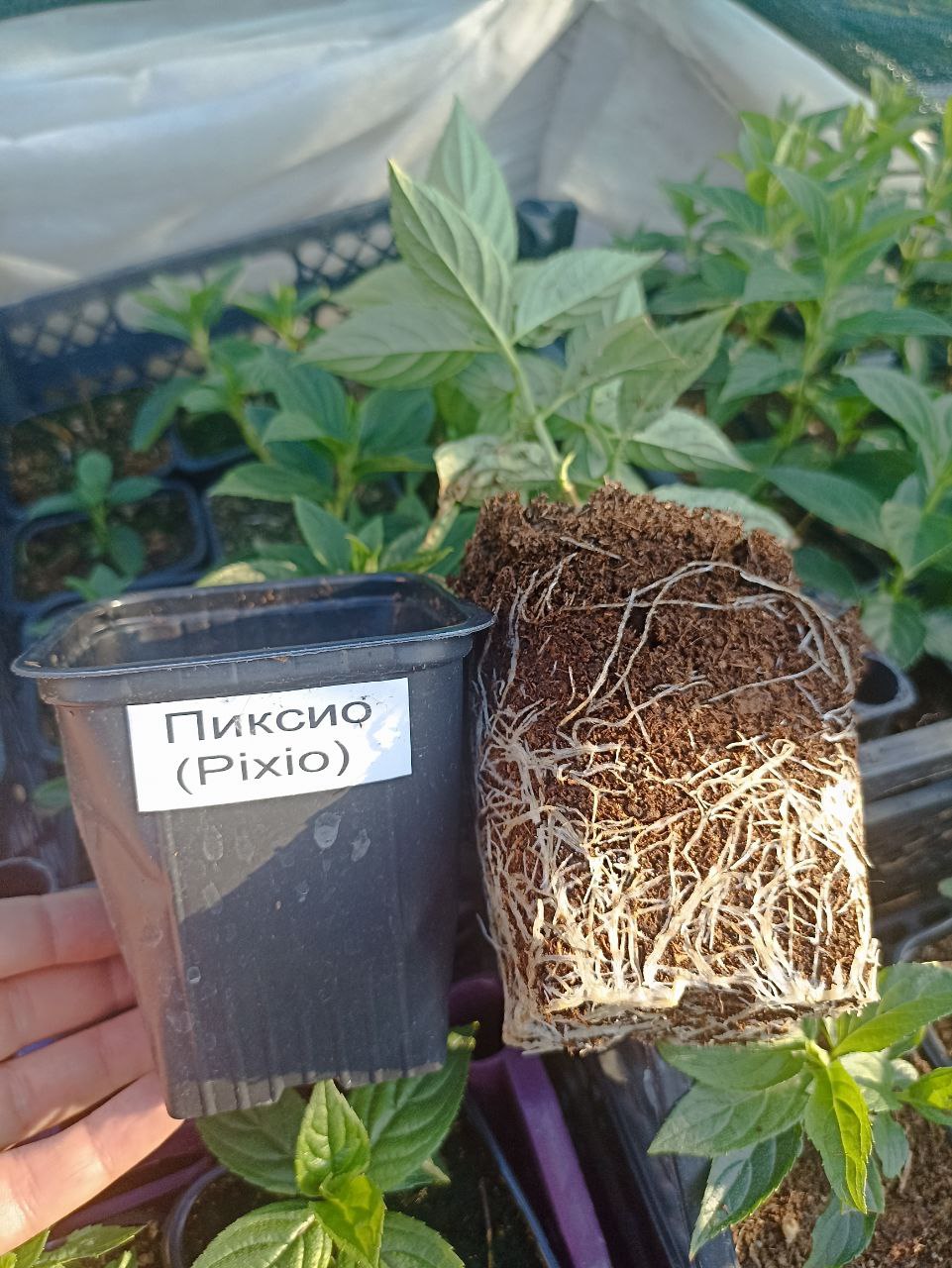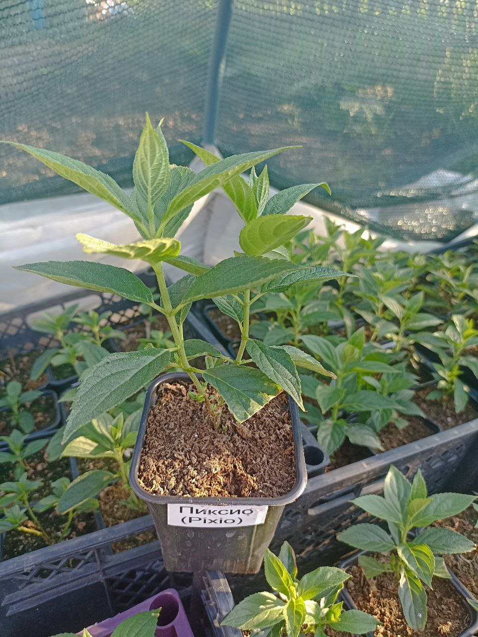 Гортензия метельчатая «Пиксио» — компактный, густой кустарник высотой и шириной до 80 см. Листья ярко-зелёные, мелкие и глянцевые. Основное внимание привлекают пышные соцветия с маленькими, округлыми цветками, которые могут быть разных цветов, включая оттенки розового, фиолетового, голубого и белого. Цветение обычно начинается в июле и продолжается до заморозков. Некоторые характеристики: Место посадки: солнечное или полутенистое. Почва: влажная, дренированная, плодородная. Зимостойкость: зона 4 (до -29 °С). Этот сорт гортензии часто используется для оформления клумб, групповых посадок, а также для создания живых изгородей, контейнерных комбинаций и срезки цветов.