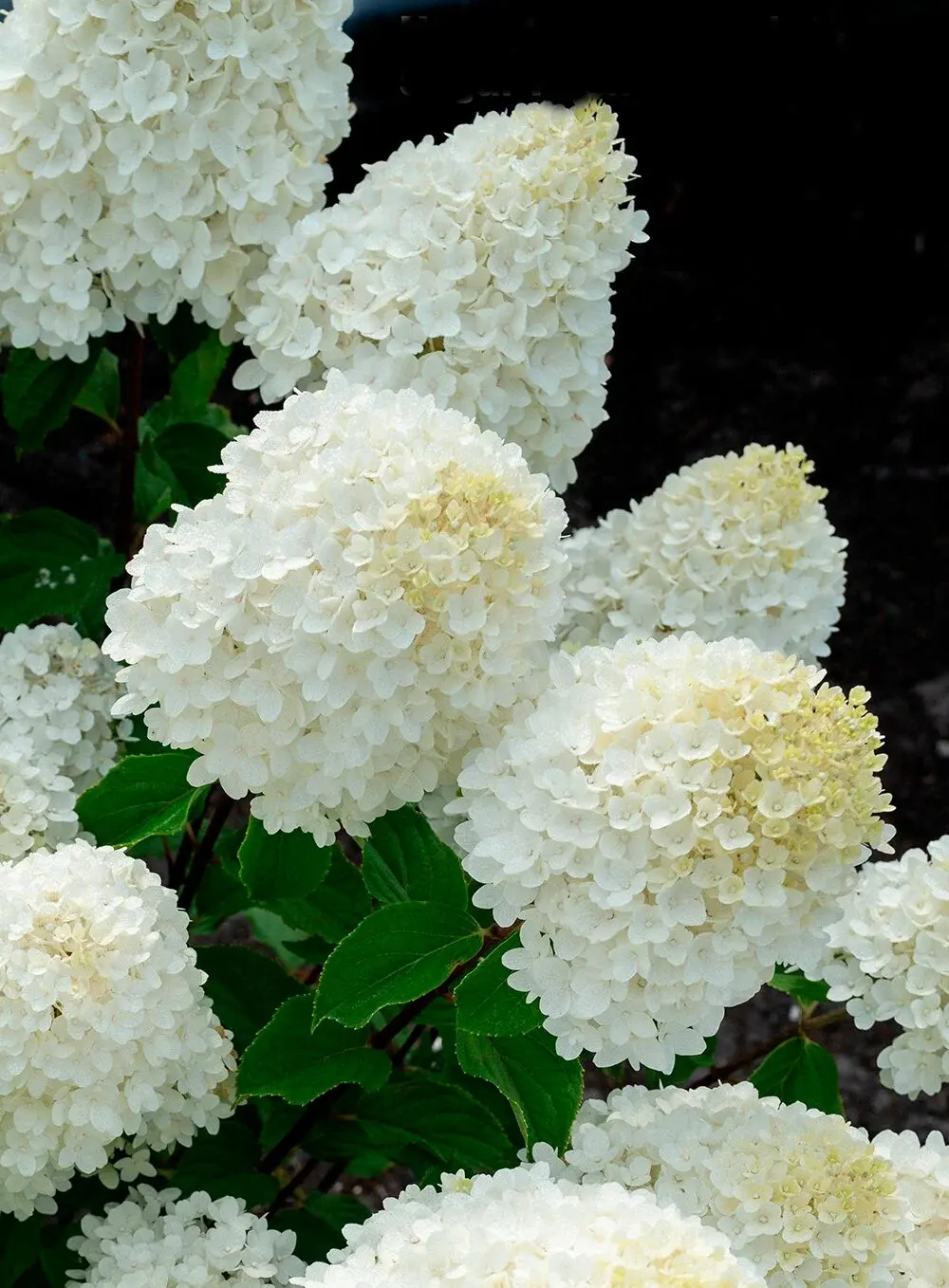 Гортензия метельчатая «Полярный медведь» (Polar Bear) — декоративное многолетнее растение, отличающееся крупными соцветиями и высокой устойчивостью к неблагоприятным условиям. Особенности сорта: Соцветия обладают конической формой, большие и плотные, могут достигать в длину до 40 см. Когда кустарник зацветает, его соцветия имеют зеленоватый окрас, постепенно переходящий в чисто-белый. В конце они могут приобретать лёгкий розоватый оттенок. Листья крупные, зелёные, яйцевидной формы, с зазубренными краями. Они сохраняют свой насыщенный цвет до самой осени, придавая кустарнику декоративный вид даже после периода цветения. Сорт может достигать 1,5–2 метра в высоту и около 1,5 метров в ширину. Компактный и прямостоячий куст хорошо сохраняет форму. Цветение начинается в июне и продолжается до поздней осени. Точные сроки зависят от региона произрастания и его климатических условий. Морозостойкость высокая: кустарник выдерживает морозы до -40 °С. В ландшафтном дизайне гортензия «Полярный медведь» подходит для создания эффектных цветников и садовых композиций, а также для живых изгородей.