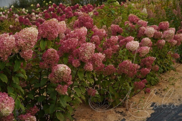 Гортензия метельчатая Редлайт (Gardenlight Redlight) — компактная гортензия из сортосерии «Гарденлайт». Описание: Куст: высотой до 1 м, шириной до 0,8 м. Побеги прочные, прямостоячие. Соцветия: крупные, конические, до 30 см. Цветки: стерильные, в начале цветения они лаймового цвета, затем через нежно-бело-розовые тона, ближе к осени начинается переход к красным и тёмно-красным оттенкам. Период цветения: с июля по сентябрь. Морозостойкость: до -29 °С. Место посадки: солнце, полутень. Почва: влажная, дренированная, кислая. Применение: в качестве живой изгороди или групповых посадках в сочетании с другими декоративными кустарниками, прекрасный солитер. Подходит для контейнерного выращивания.
