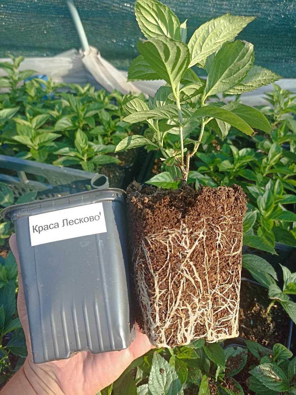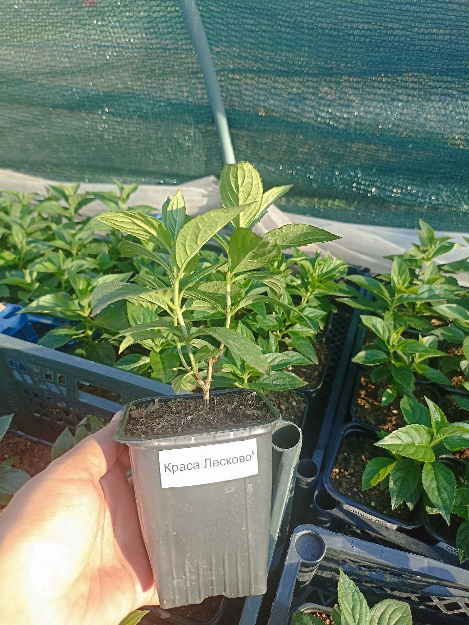 Гортензия метельчатая «Краса Лесково» — новинка отечественной селекции, получена в питомнике «Лесково». Куст мощный, с сильными, прочными побегами красно-коричневого цвета. Крона густая и округлая. Высота 1,2–1,5 м, ширина 1,0–1,4 м. Лист среднего размера, тёмно-зелёного цвета, с ярко выраженным жилкованием. Соцветие плотное, крупное, ширококонической формы. Состоит из стерильных цветков с четырьмя лепестками. Длина соцветия 25–30 см. Зацветает в первой декаде июля и цветёт до конца сентября. Цветки раскрываются белоснежными, затем нежно-розовеют, и к концу цветения становятся ярко-розовыми. Гортензия «Краса Лесково» предпочитает солнце или полутень и легко приспосабливается к различным типам почв, хотя больше всего ценит богатые гумусом. Зимует без укрытия. Морозостойкость –30ºC. Используется как одиночное растение на газоне, создаст эффектную композицию с хвойными растениями, подойдёт для создания свободнорастущей живой изгороди.