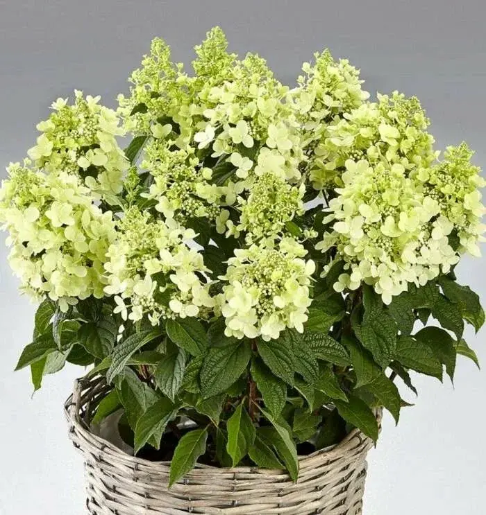 Метельчатая гортензия «Пансана» (Pansana) — эксклюзивная серия патио немецкой селекции PAN. Описание: компактный, хорошо разветвлённый куст высотой до 100 см. Ветви крепкие, прямостоячие, покрыты листвой интенсивно-зелёного цвета. Метелки крупные, плотные, зелёно-лаймового цвета. Цветение: раннее, с июня и до заморозков. На солнечном участке или в лёгкой полутени цветение пышнее и ярче. Аромат: приятный ванильный. Место посадки: солнце или полутень. Почва: плодородная, дренированная, кислая. Зимостойкость: высокая. Использование: благодаря компактному росту гортензии этой серии хорошо смотрятся в низких садовых бордюрах и в кашпо.